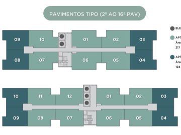 Unidades Torre B - finais [ 11, 12, 01, 02, 08, 07, 06, 05 ] - (12 Unidadees por pavimento)