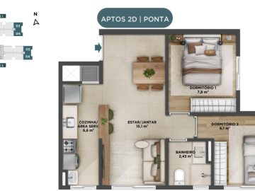 Apartamentos de 2 Dormitórios 43m² privativos é perfeito para quem busca o equilíbrio entre funcionalidade e bem-estar. Com 2 dormitórios, 1 banheiro e uma sala convidativa, você terá o espaço ideal para criar momentos inesquecíveis com a família e amigos. Além disso, conta com 1 vaga de garagem para sua comodidade.