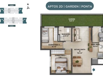 UNIDADE DE PONTA - 2 DORMITÓRIOS + GARDEN