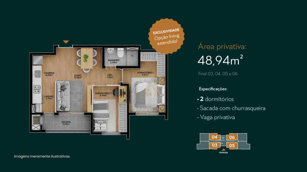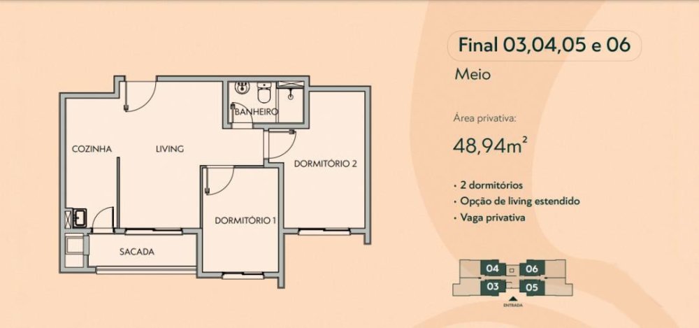 - Apartamentos com 02 e 03 dormitórios + sacada.