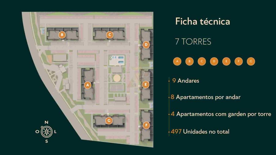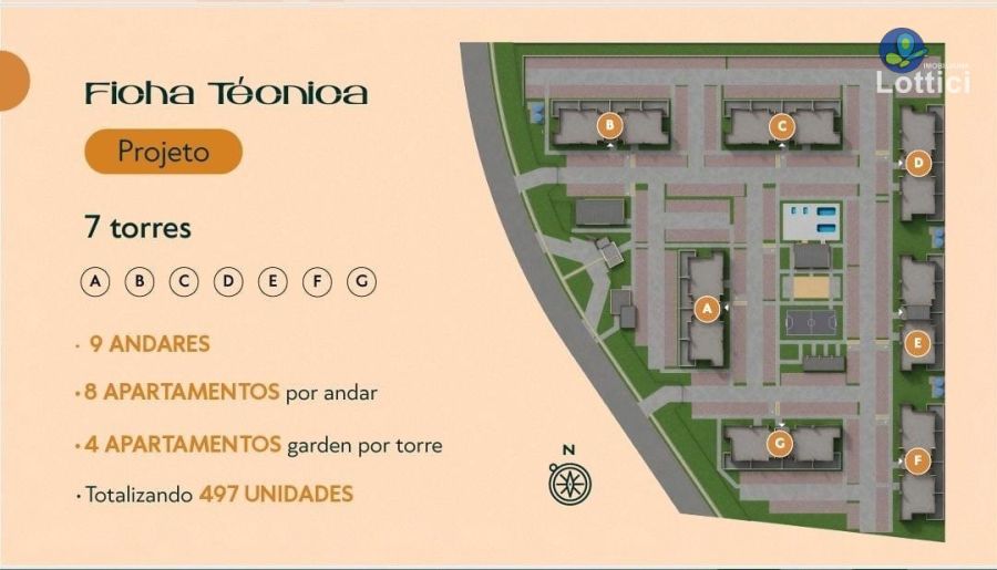 Empreendimento : 07 torres, 09 andares, 08 unidades por andar.