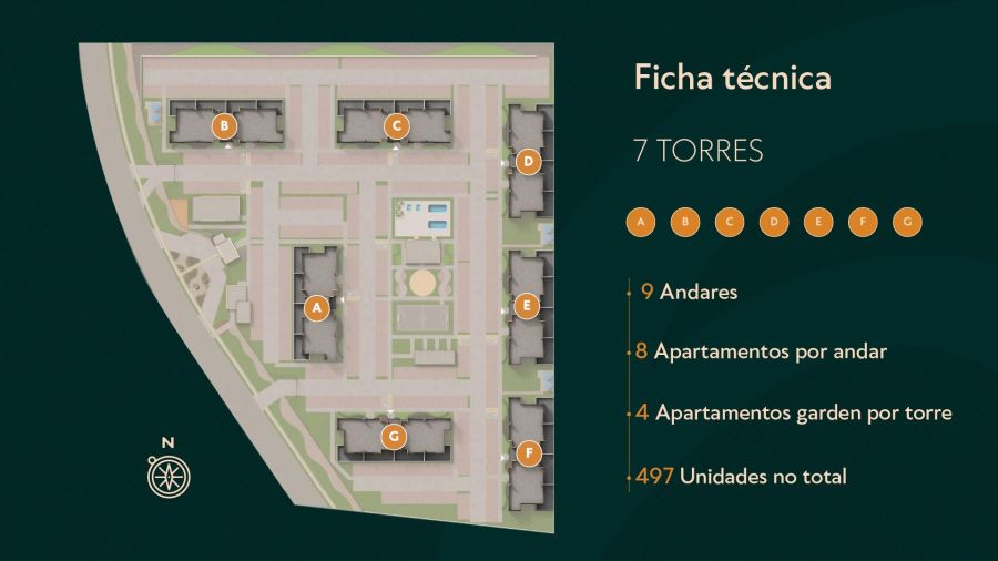 Empreendimento : 07 torres, 09 andares, 08 unidades por andar.
