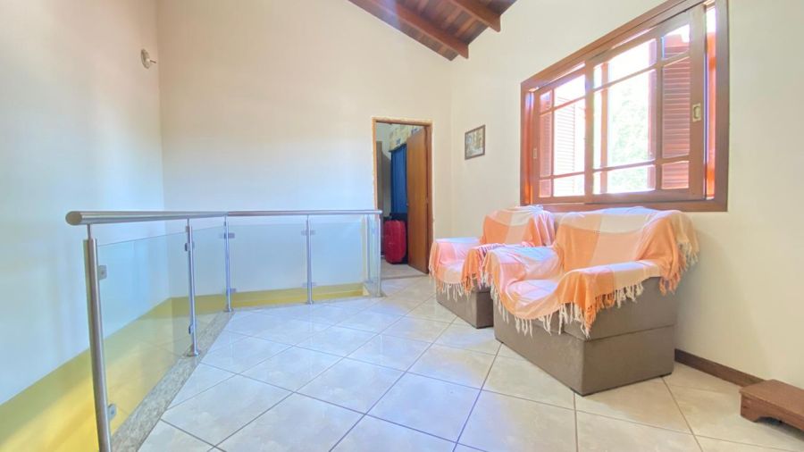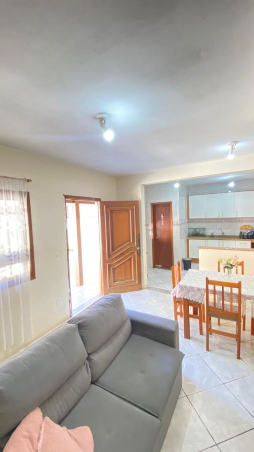 No térreo, área social integrada entre sala e cozinha; no pavimento superior, dormitórios confortáveis com boa iluminação natural.