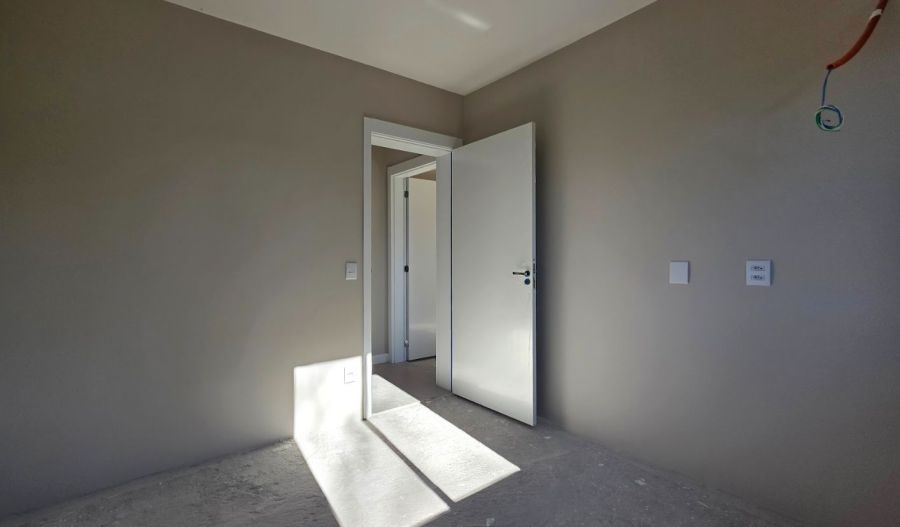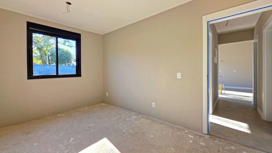 São 3 dormitórios, incluindo uma suíte privativa, além de acabamentos de alto padrão, como porcelanato classe A 90x90 e esquadrias em alumínio preto.