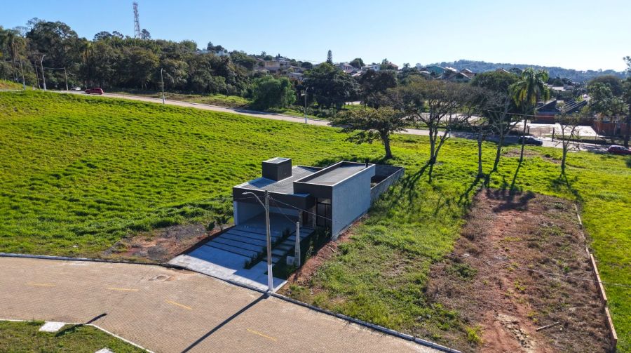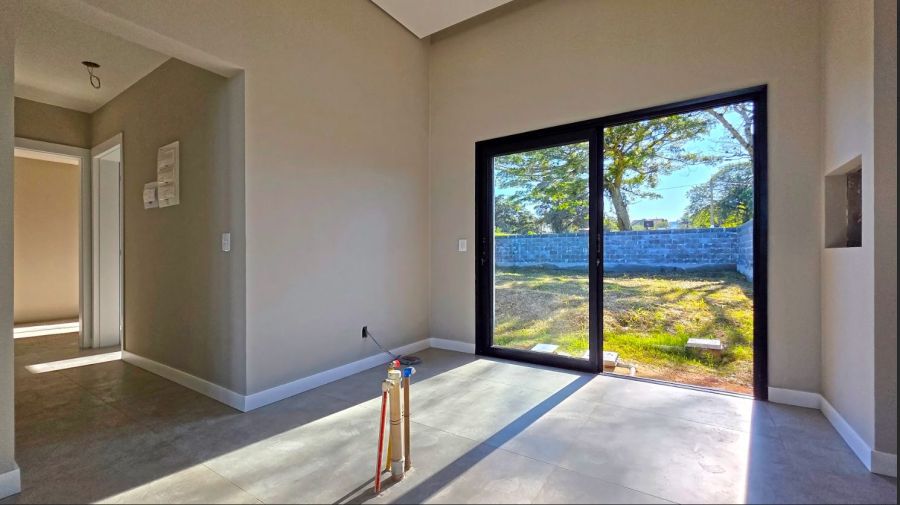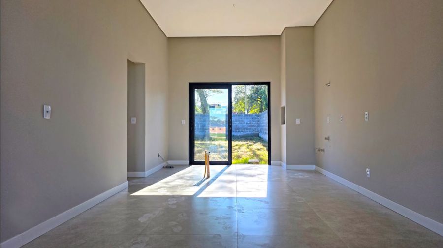 Nos fundos, o pátio amplo oferece múltiplas possibilidades de uso, como área de lazer, paisagismo, espaço para pets ou futura área gourmet. A garagem coberta para dois veículos proporciona praticidade no dia a dia.
