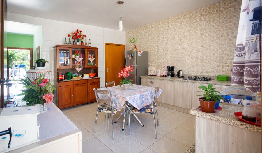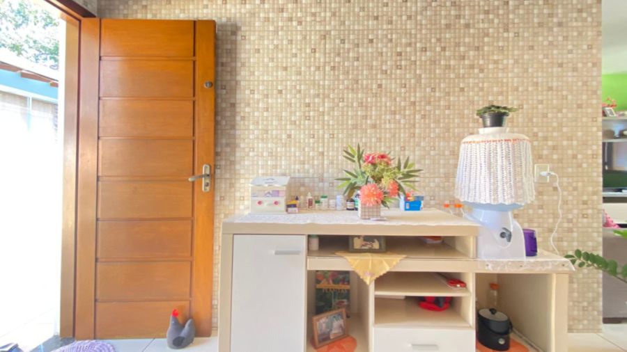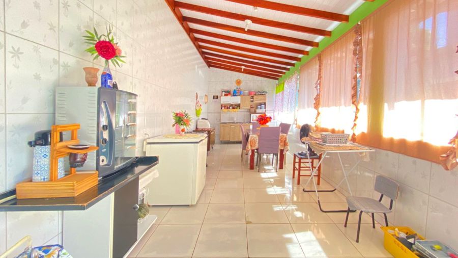 Nos fundos, o imóvel possui área gourmet integrada à lavanderia e lavabo, proporcionando funcionalidade adicional. Na parte frontal, o pátio é totalmente revestido com piso cerâmico, eliminando a necessidade de manutenção com grama, e conta com portão eletrônico, agregando segurança e comodidade.