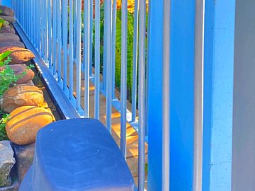 - Pátio frontal sem necessidade de manutenção com grama