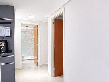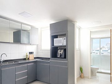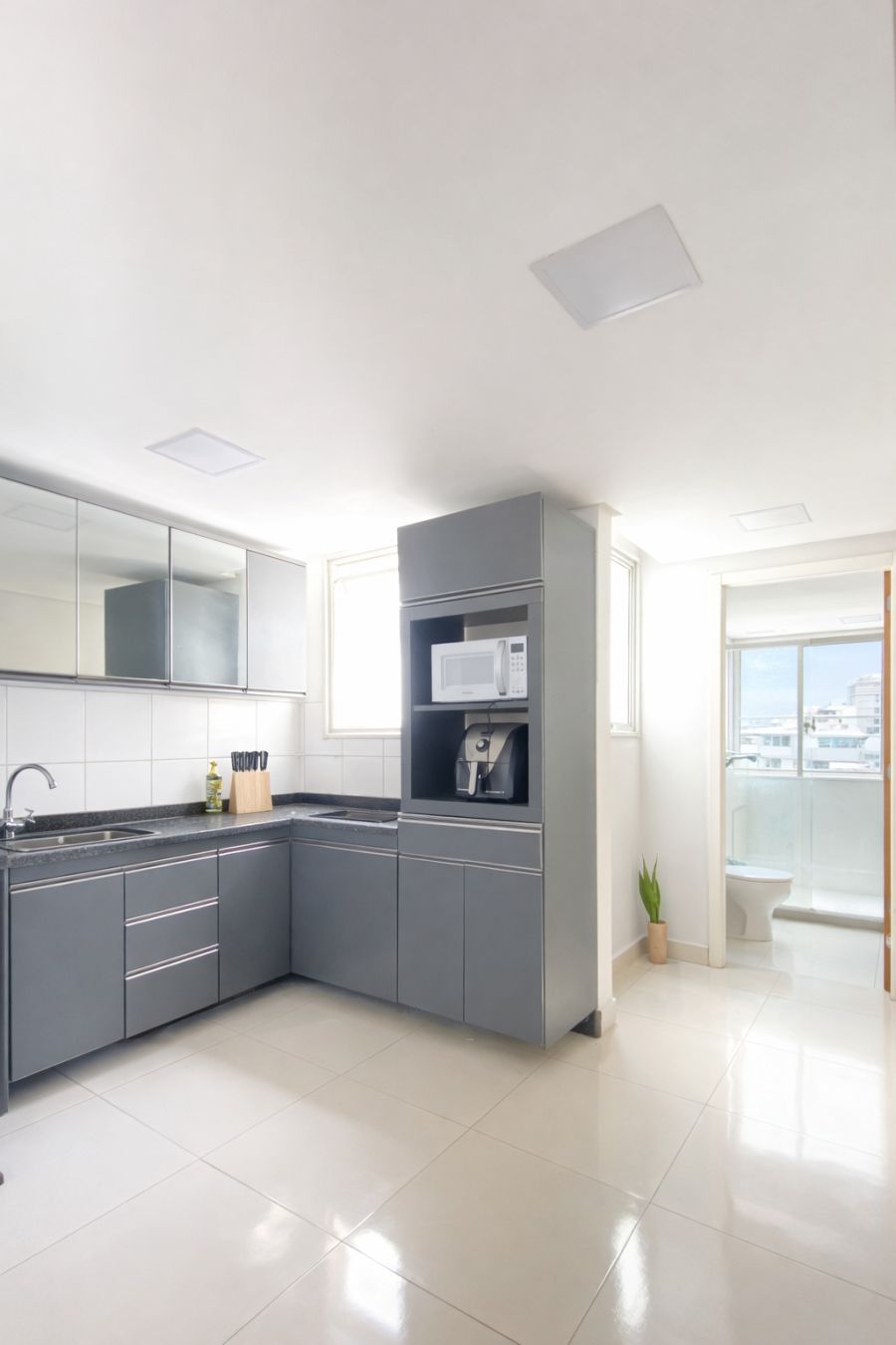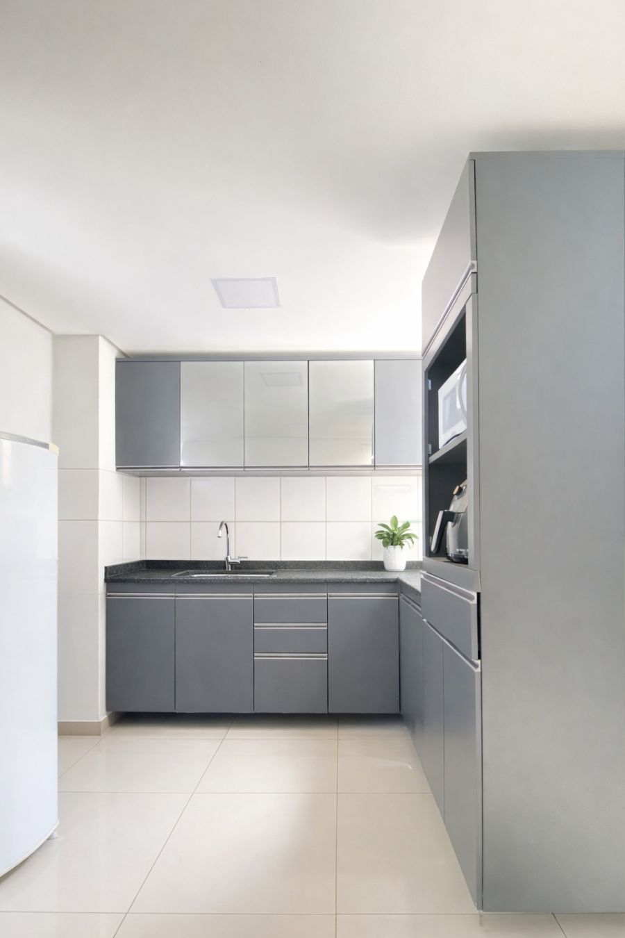 Descritivo: Este imóvel destaca-se pelo excelente padrão de acabamento após reforma completa. O apartamento apresenta piso em porcelanato em todos os ambientes e teto revestido com forro em gesso e sanca, proporcionando uma estética moderna e sofisticada. A unidade é entregue semimobiliada, incluindo cozinha montada (sem eletrodomésticos) e roupeiro no dormitório.