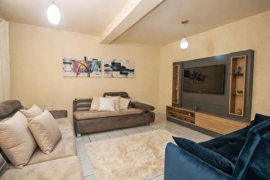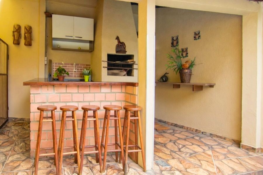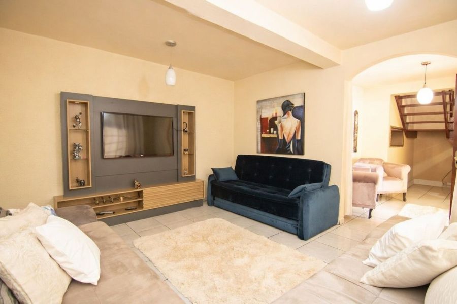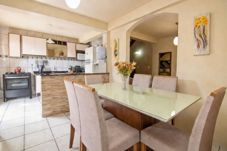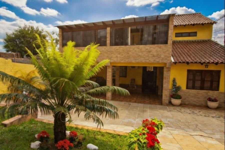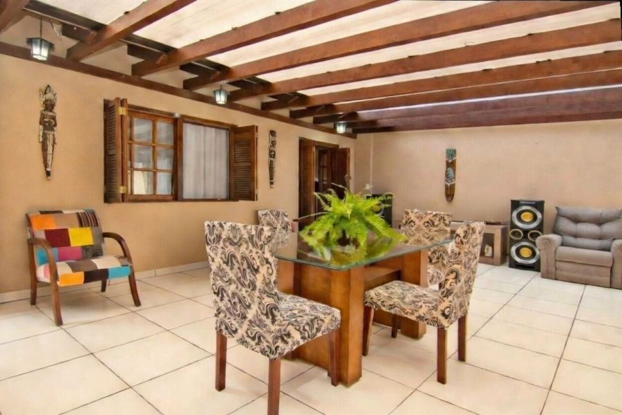 Descritivo: Residência sólida de 2 pavimentos em estilo colonial, destacando-se pela excelente iluminação natural e ambientes integrados. O imóvel possui uma atmosfera rústica e aconchegante, possui sala de TV que pode ser facilmente convertida em 4º dormitório, ideal para quem valoriza o convívio familiar. No piso superior, conta com um amplo salão de festas privativo de 48 m². A área externa é um verdadeiro refúgio urbano, com pátio misto, pergolado e estrutura completa para pets de grande porte.