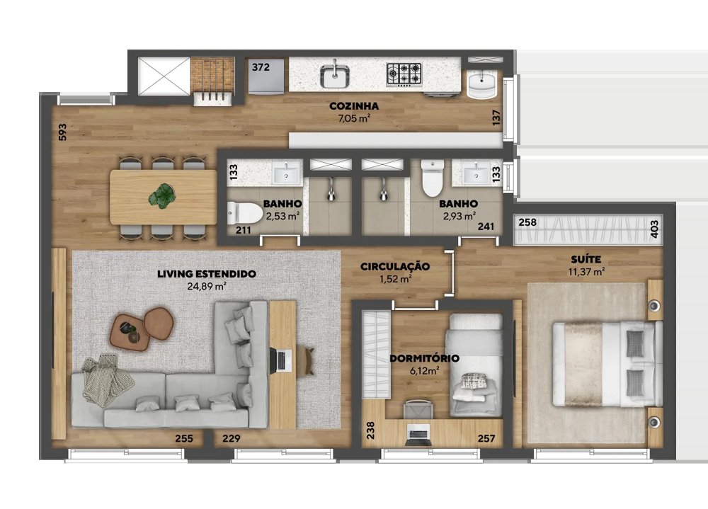 • Área Privativa: 67,56 m²