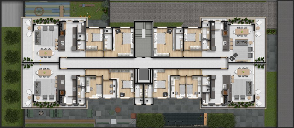 Cada unidade foi projetada para oferecer funcionalidade e sofisticação, com acabamentos de alto padrão e ambientes que valorizam a iluminação natural, ventilação cruzada e integração dos espaços.