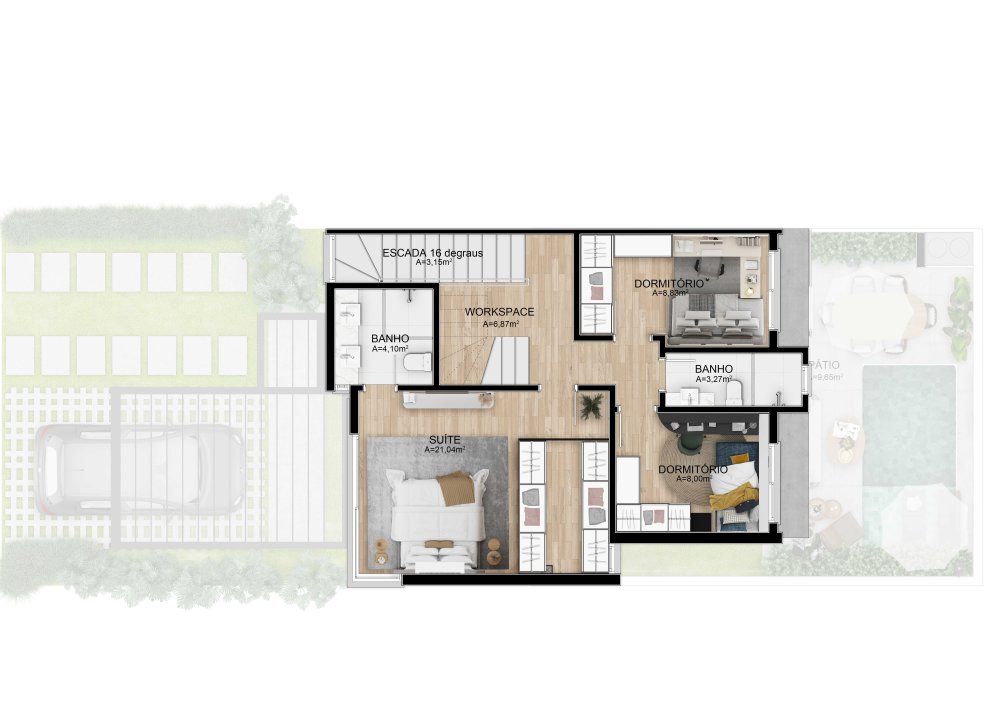 Ainda há a opção de sobrados com subsolo. Com 200m², oferecem ainda mais espaço e conforto.