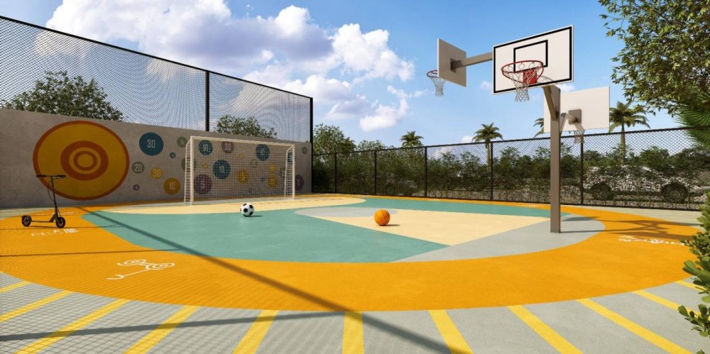 Quadras multiuso: beach tennis, basquete e patinação.