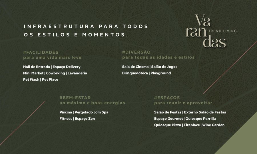 O Varandas Trend Living oferece uma infraestrutura completa de lazer e segurança, com: