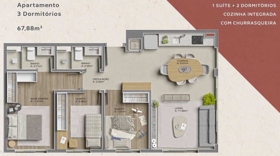 - Área Privativa: 124,82 m²