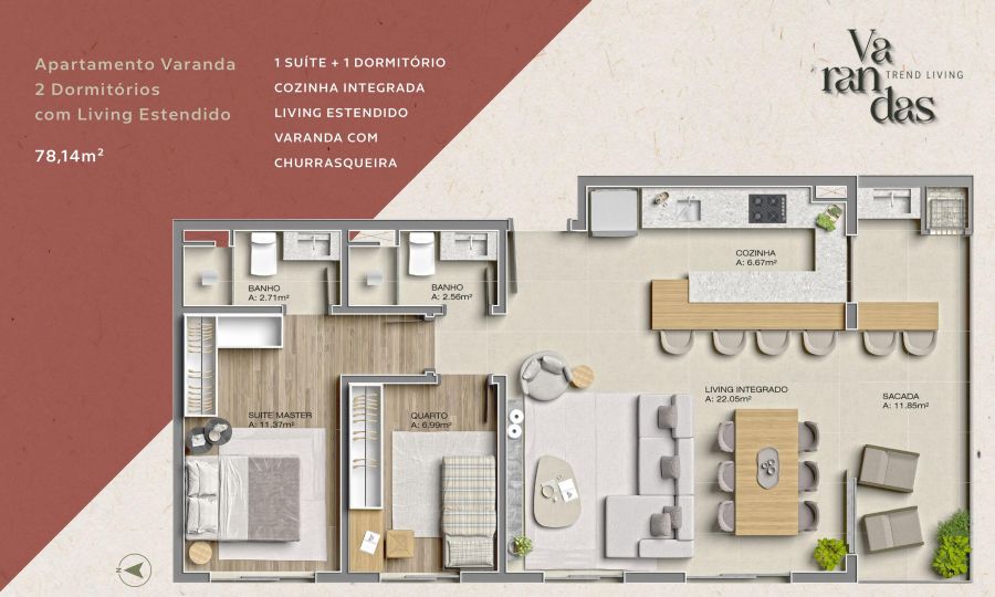 Varandas Trend Living - Imóvel na planta 90% financiado.