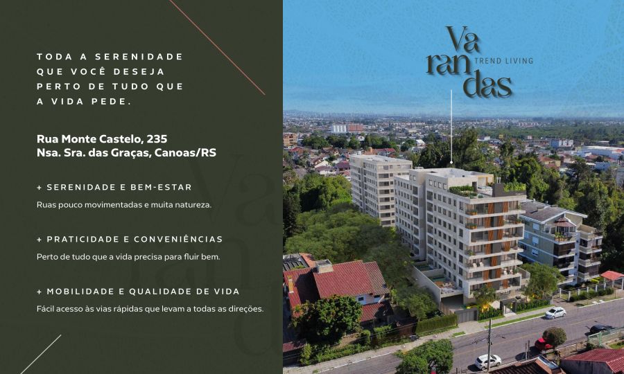 Não perca a oportunidade de viver em um lugar que oferece conforto, lazer e segurança em uma das melhores localizações de Canoas. Agende sua visita e encante-se com o Varandas Trend Living!